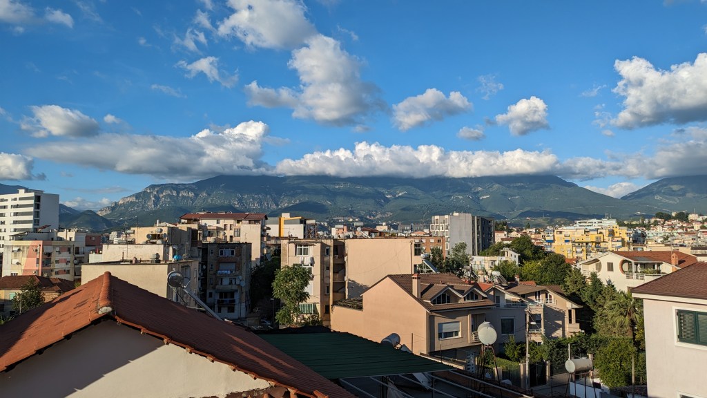 Flew to Tirana June 1. I think the passengers might have overpowered the attendants and physically thrown me out of the plane if I hadn’t worn a mask the whole flight – congested and coughing the whole way from a cold/sinus infection I picked up in Greece. The descent was the worst – I was practically deaf by the time we landed.